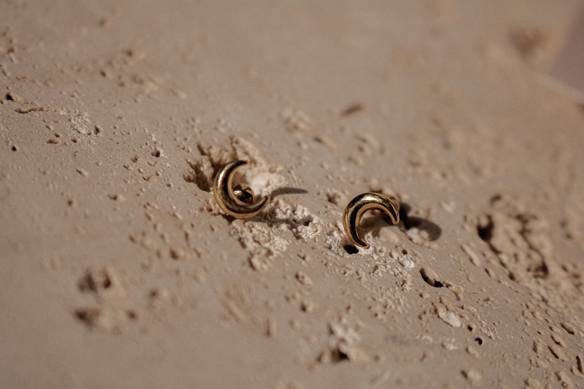 The cutest little crescent moon studs perfect for layering with an ear stack for a modern boho look.