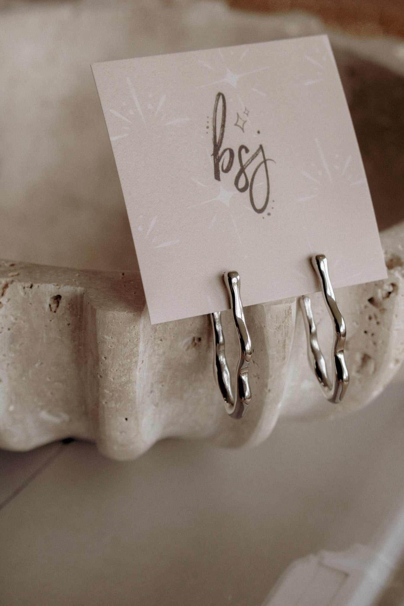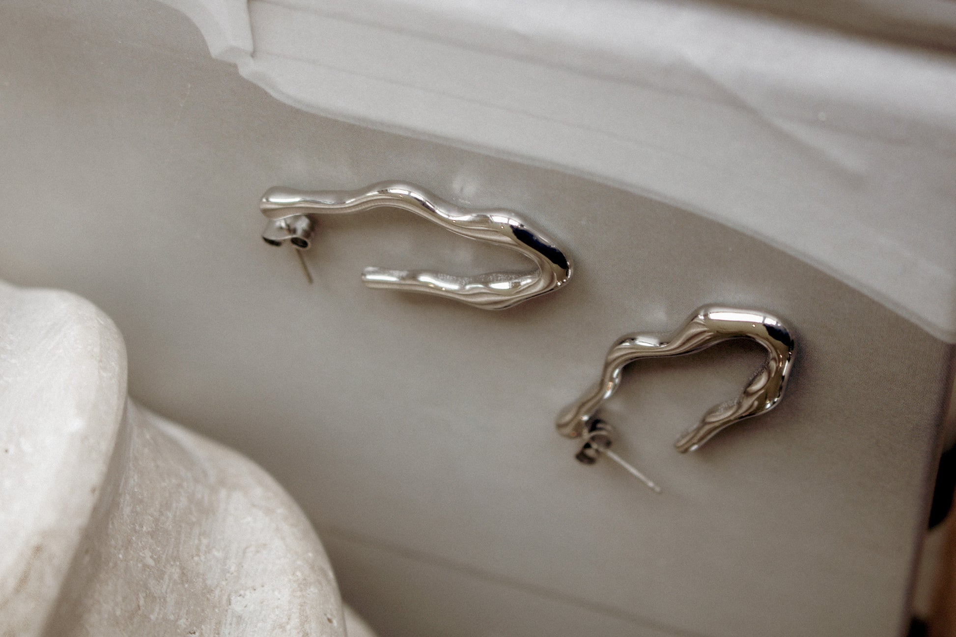 These vintage-inspired hoops showcase a unique oblong shape with a classic wavy design, perfect for adding a timeless touch to any outfit. Available in gold and silver.