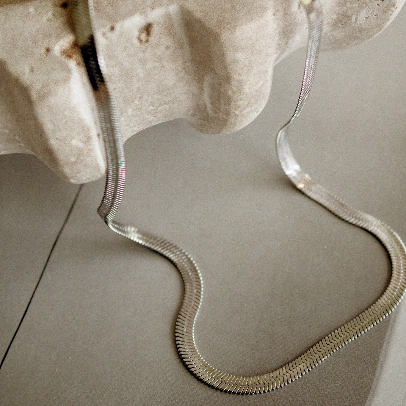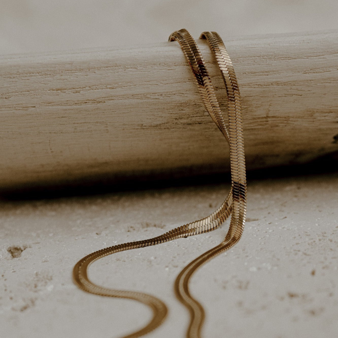 This throwback chain is simple yet the best for adding interest to your necklace stack. The snake chain is great on its own or stack with another pendant or simple chain.