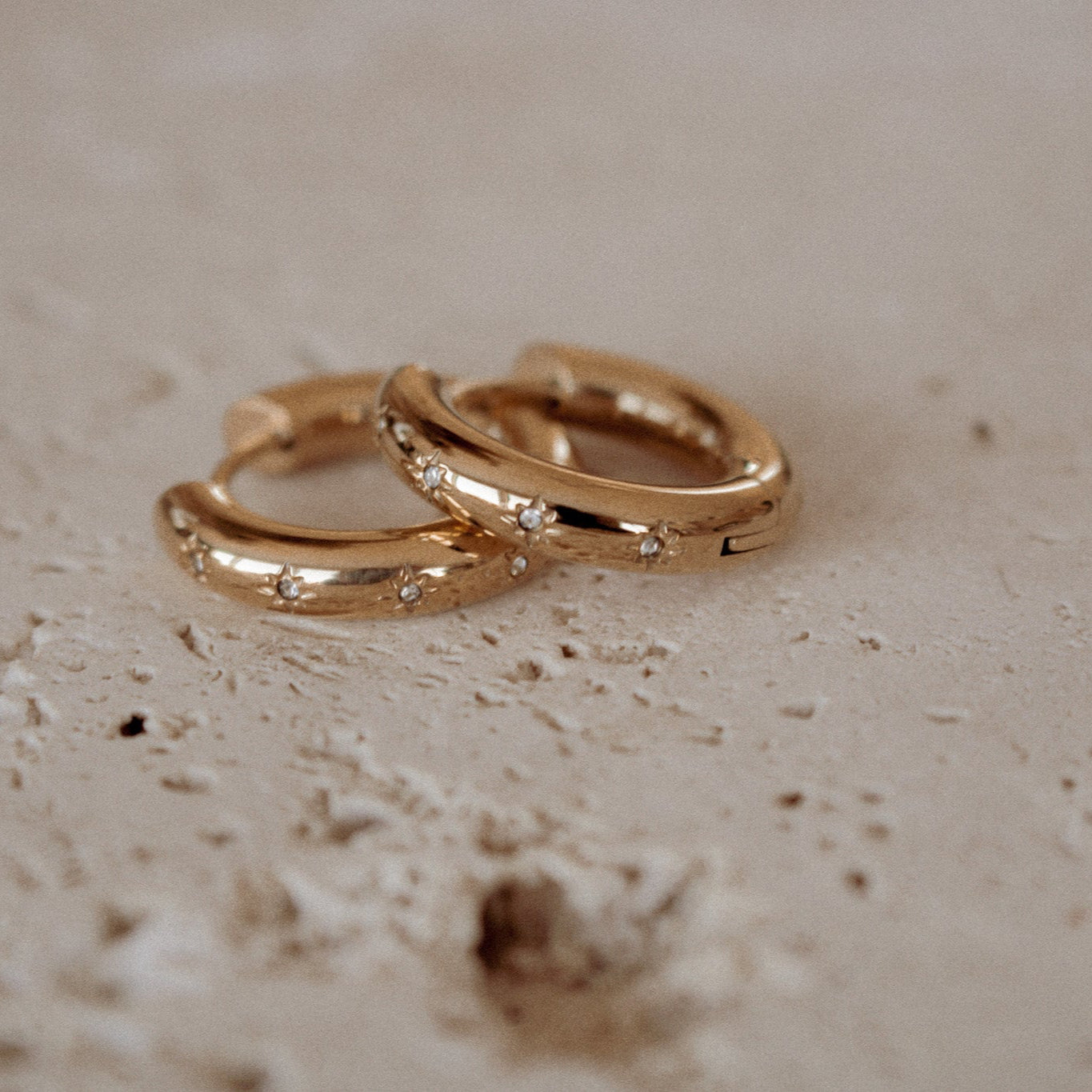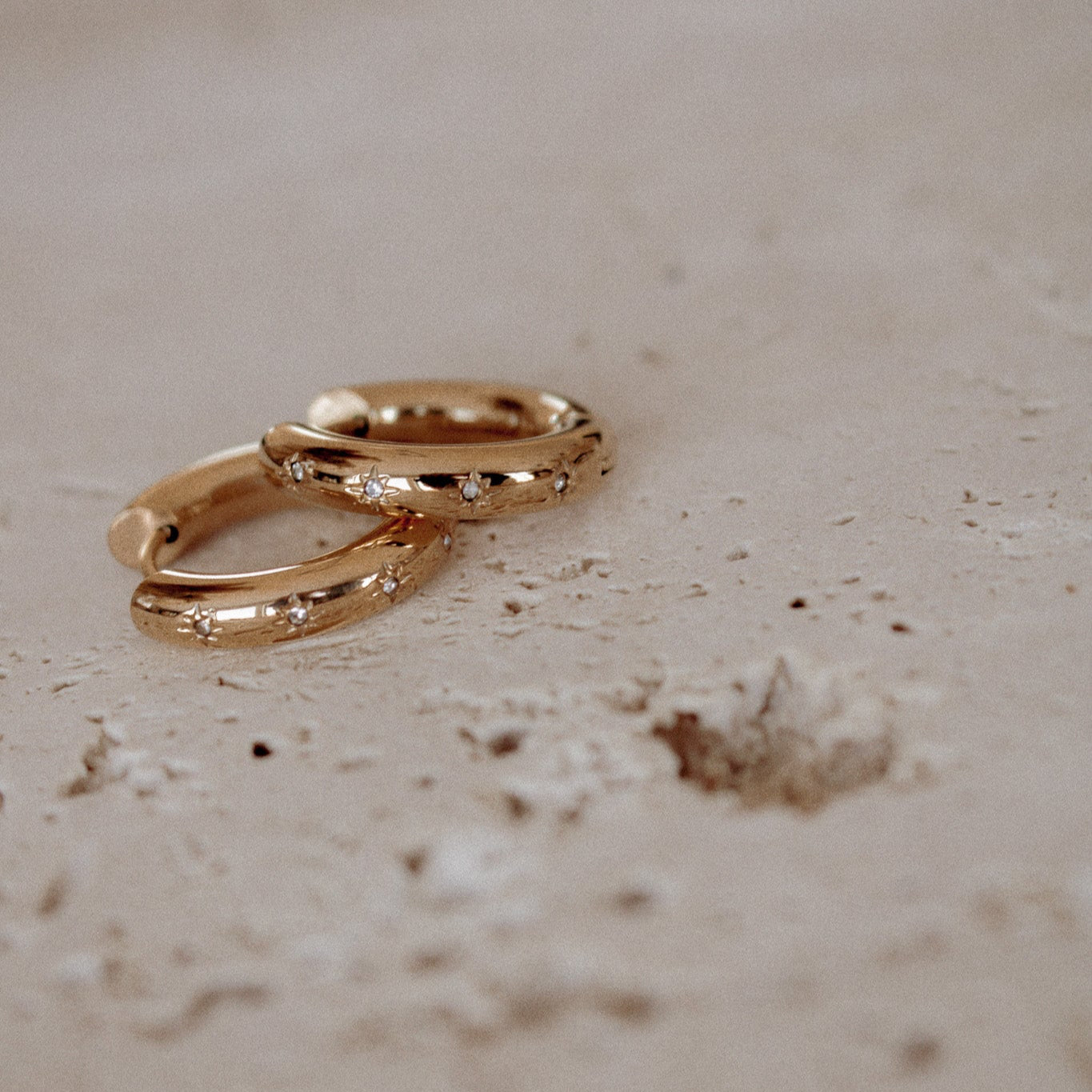 A medium hoop lined with gorgeous mini etched crystal stars.
