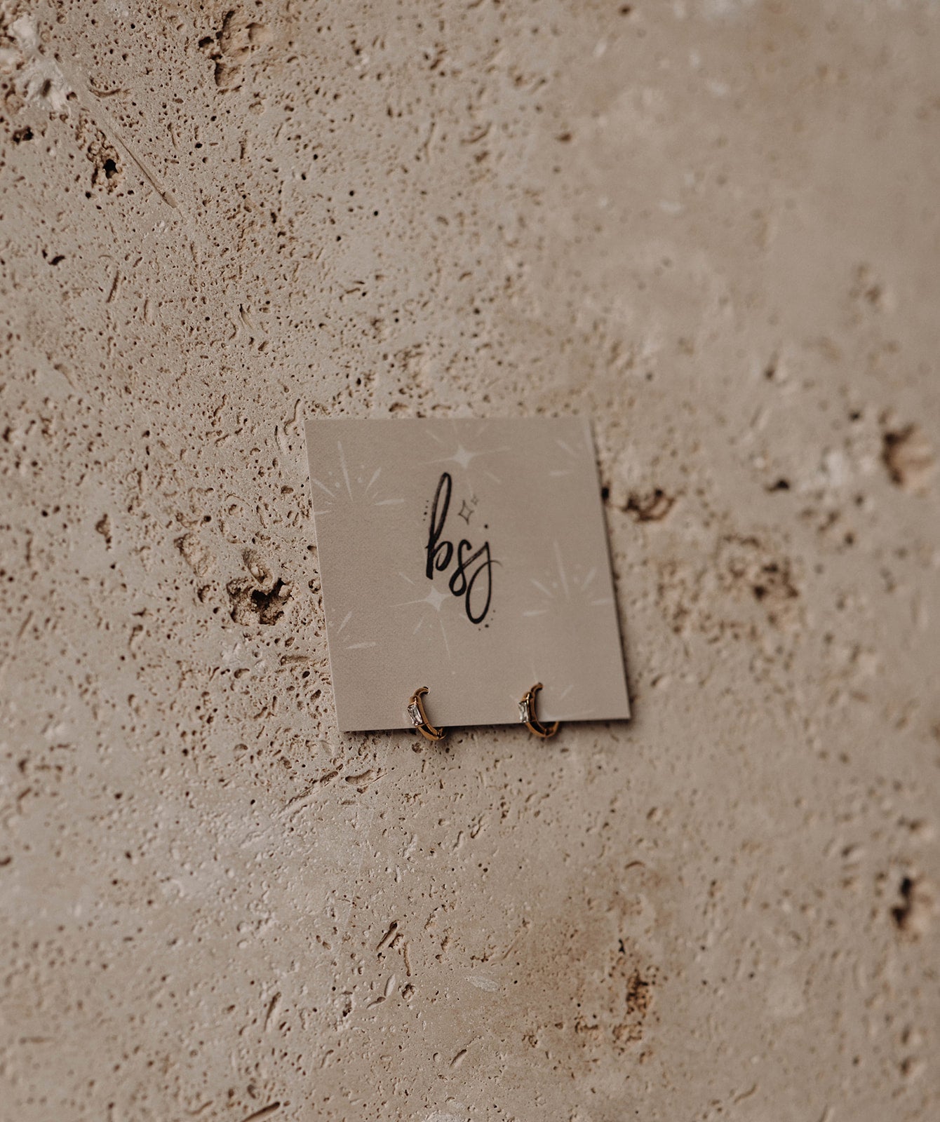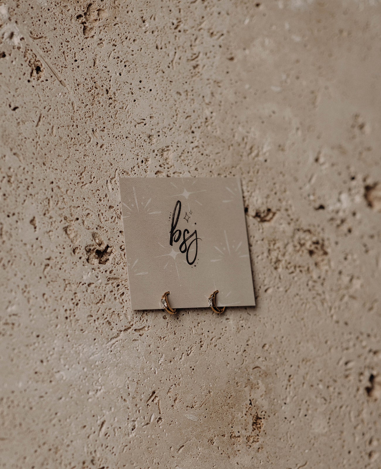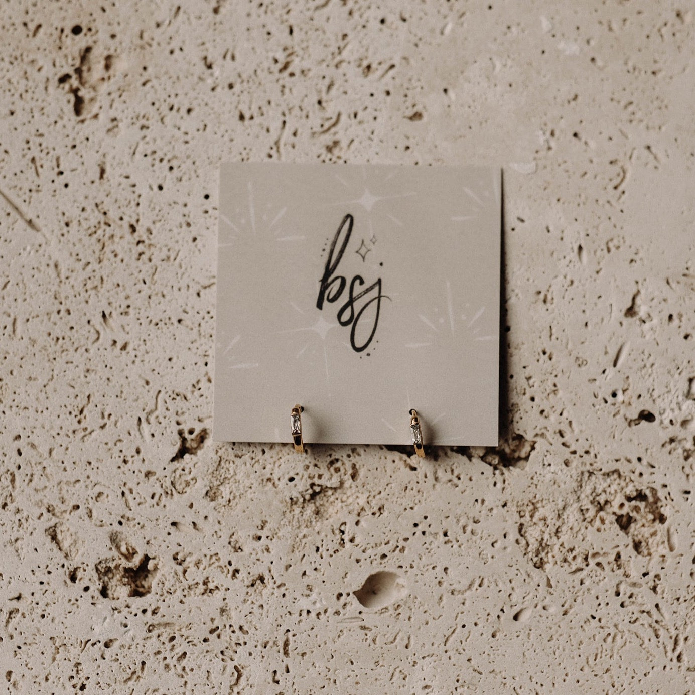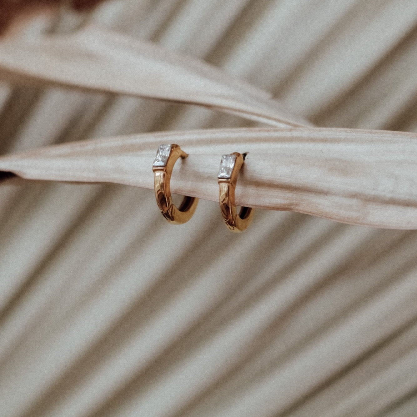 The perfect tiny everyday pair of huggies. These mini round hoops feature a single rectangle crystal. Minimalist and go with everything!